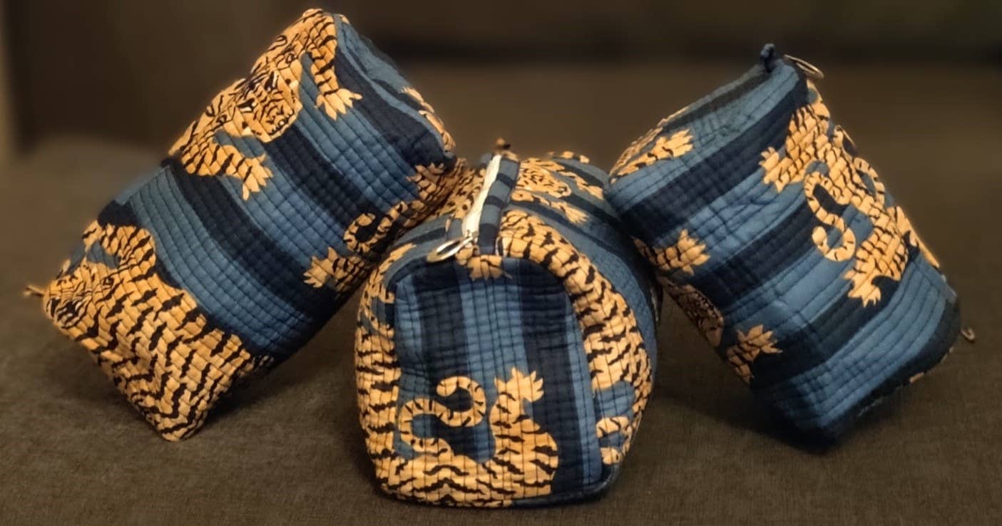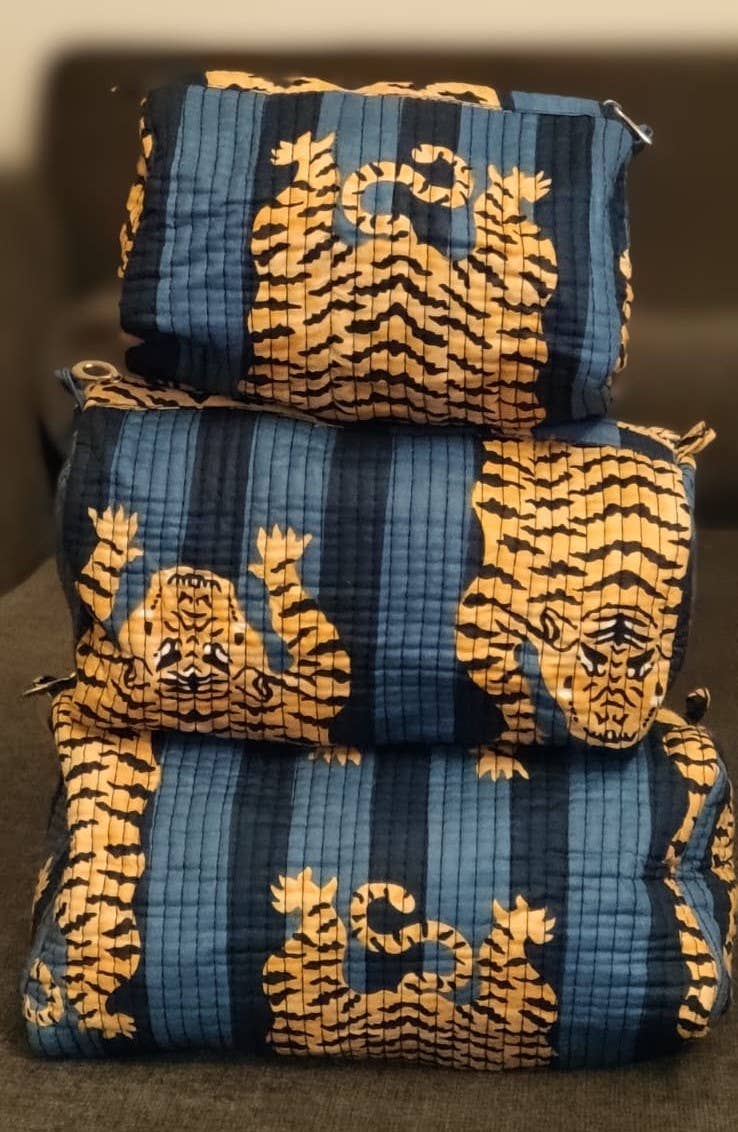 Bold and beautiful, our Dark Blue Tiger Quilted Bag Set makes organization effortlessly stylish. Handcrafted from soft cotton with striking tiger motifs on deep indigo blue, each bag is quilted for structure and durability.