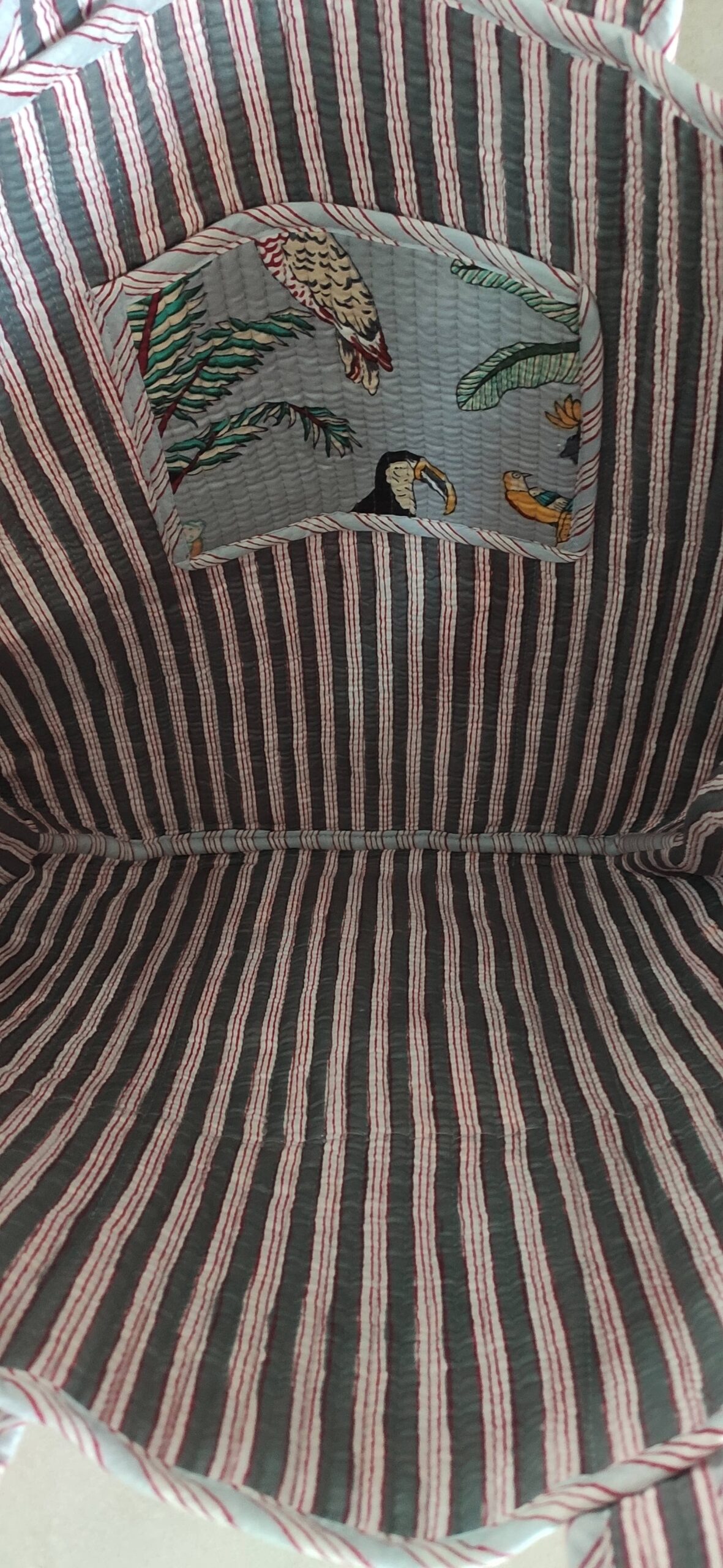 Crafted from 100% cotton with soft quilting, it’s lightweight yet sturdy, ideal for travel, work, or everyday errands. The long handles make it easy to carry on your shoulder, while the roomy interior ensures there’s space for all your essentials.