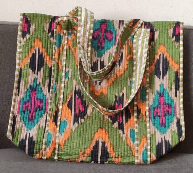 Our Green Ikkat Cotton Quilted Tote Bag is the perfect combination of style and function.