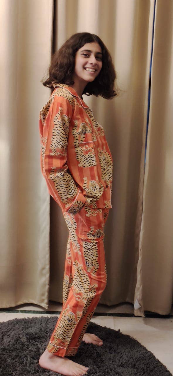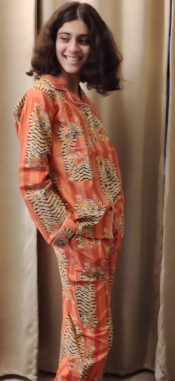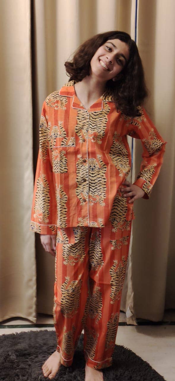 Be the first to review “Orange Tiger Print Long Pyjamas Set”
