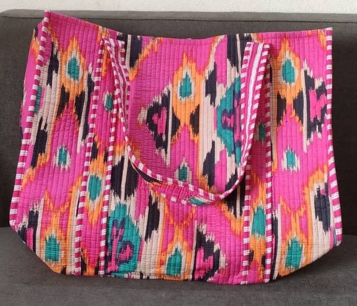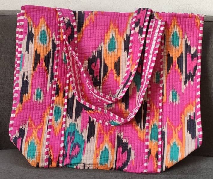 Our Pink Ikkat Cotton Quilted Tote Bag is the perfect combination of style and function.